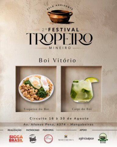 A capital mineira se prepara para receber, de 16 a 30 de agosto, a segunda edição do Festival Tropeiro Mineiro. Ao longo de duas semanas, 31 bares e restaurantes vão apresentar versões autorais de um dos pratos mais emblemáticos da culinária brasileira, acompanhadas de drinks preparados com a cachaça mineira Jeceaba. As criações serão avaliadas pelo público e por um júri técnico, e a programação se encerra em 6 de setembro, com festa na Praça Duque de Caxias, em Santa Tereza. A expectativa é atrair não apenas amantes da boa comida, mas também curiosos pela história do tropeirismo e pela fusão de sabores que moldaram a gastronomia brasileira.